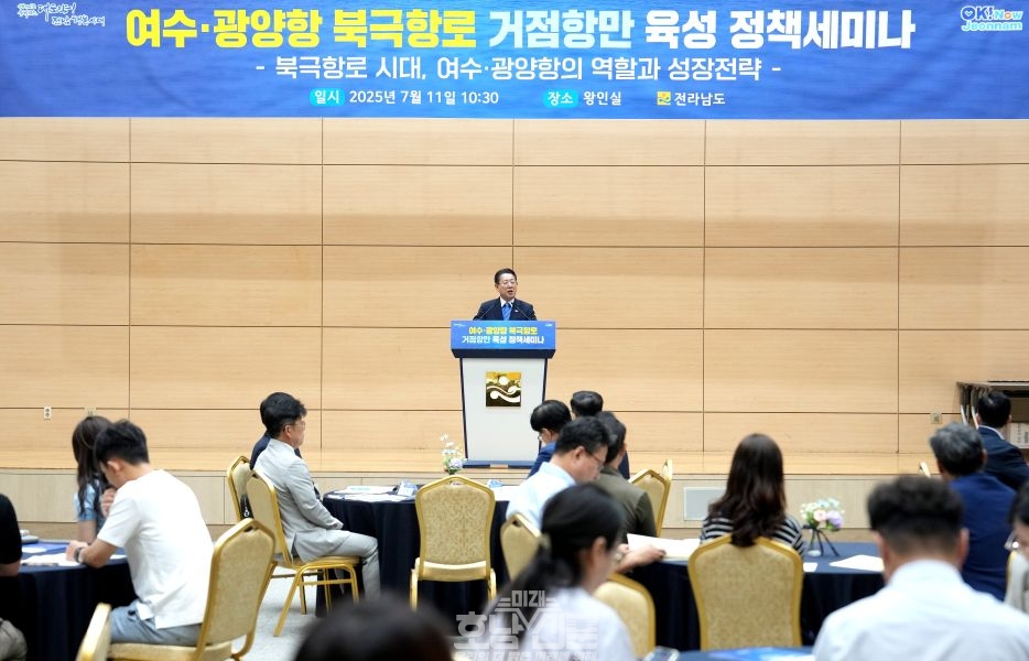 전라남도는 11일 도청 왕인실에서 ‘북극항로 시대, 여수·광양항의 역할과 성장전략’을 주제로 정책 세미나를 열어, 여수·광양항을 북극항로 거점항만으로 육성하기 위한 전략과 실행과제를 집중 논의했다.