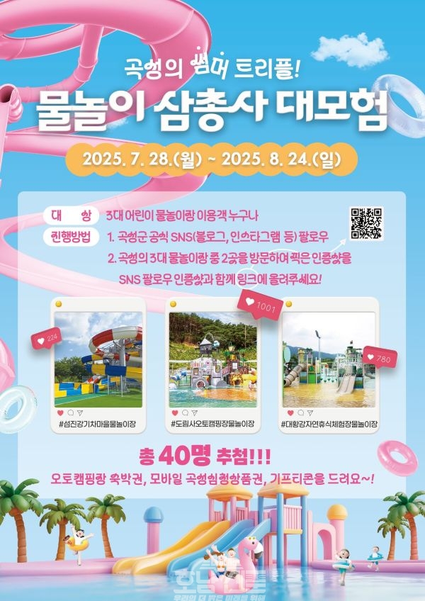 곡성군 관계자는 “올여름 곡성의 시원한 자연 속에서 물놀이도 즐기고, 인증샷으로 소중한 추억도 남기는 기회가 되길 바란다. SNS를 활용한 참여형 이벤트를 통해 관광객과의 소통을 더욱 강화하겠다.”라고 말했다.