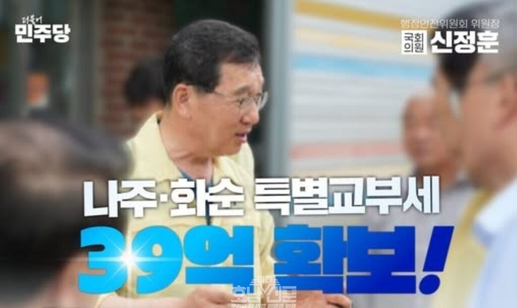 신정훈 의원은 “ 이번 특별교부세 확보로 나주와 화순의 주민 안전과 생활 편의가 한층 향상될 것 ” 이라며 , “ 앞으로도 지역의 현안 해결과 발전을 위해 적극 노력하겠다 ” 고 전했다 .