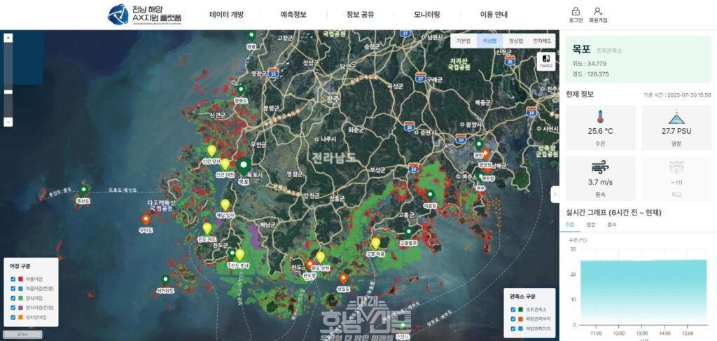 전라남도는 기후변화에 따른 해양환경의 급변과 이에 따른 양식어장 피해를 최소화하기 위해, AI로 어장환경을 예측해 어민에게 제공하는 ‘미래 어장환경 예보서비스’ 개발을 본격화하고 있다고 밝혔다.