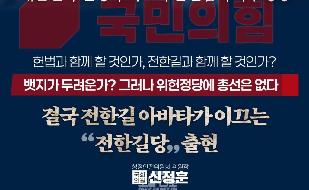 더불어민주당 신정훈 국회 행정안전위원장이 국민의힘 전당대회를 앞두고 “위헌정당과 극우정당의 오명을 벗기 위해서는 합리적 보수가 결단해야 한다”고 촉구했다.