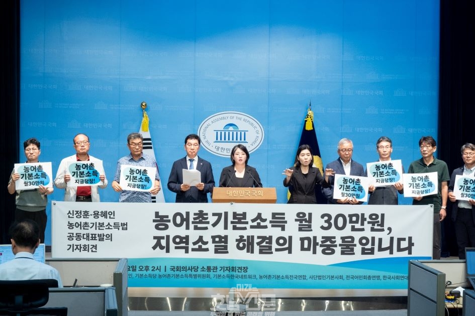 이날 기자회견에는 농어촌기본소득운동전국연합, 전국어민회총연맹, 기본사회, 한국사회연대경제 등 주요 농어촌·시민사회 단체가 함께해 입법을 촉구했다. 이재욱 농어촌기본소득운동전국연합 상임대표는 “농어촌기본소득은 단지 농촌만의 문제가 아니라 도시 문제의 해법이기도 하다”고 강조했고, 김영복 전국어민회총연맹 부회장은 “낙도 어촌의 인구 감소는 해양영토 수호에도 영향을 준다”며 국가적 대응을 요구했다.