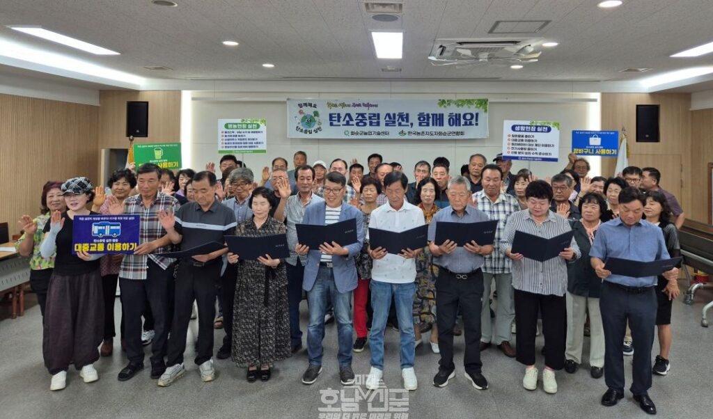 이날 농촌지도자회원들은 탄소중립 실천 결의문을 낭독하며, 영농과 생활 전반에서의 실천 의지를 다졌다.