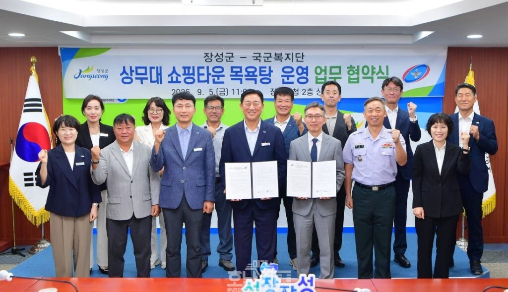 장성군이 삼계면 주민들의 생활 편의를 위해 지난 5일 군청 상황실에서 국군복지단과 업무협약을 맺었다. 김한종 장성군수, 장준화 국군복지단장 등 관계자 10여 명이 참석했다.