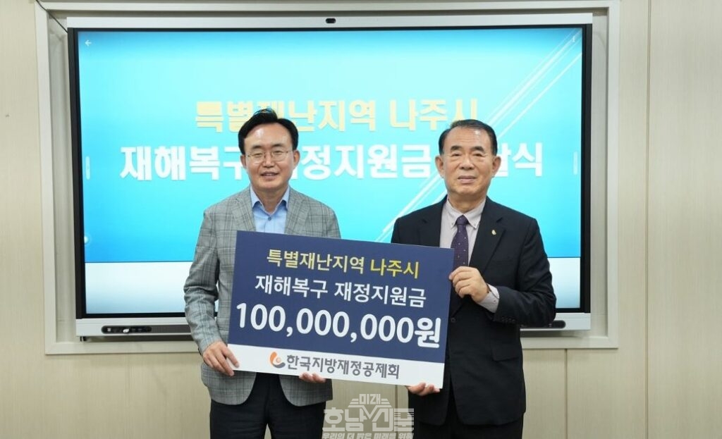 나주시(시장 윤병태)는 지난 8일 행정안전부 산하 지방 재정 전문기관인 한국지방재정공제회로부터 특별재난지역 재정지원금을 전달받았다고 10일 밝혔다.