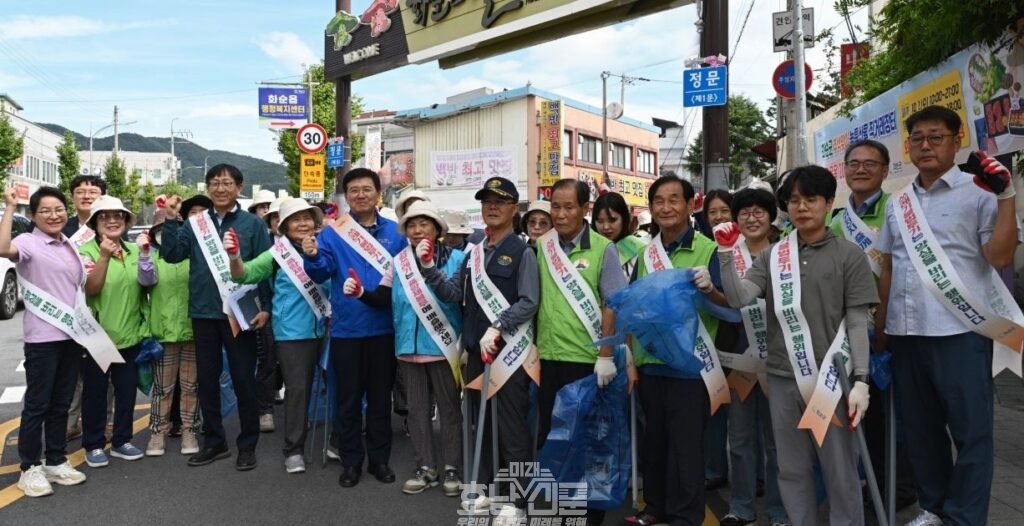 이날 행사에는 이호범 부군수를 비롯해 환경21연대 화순군지회(회장 김상호) 등 사회단체회원 50여 명이 참여해 시장 구석구석에 방치된 생활폐기물 수거 활동과 불법 폐기물 투기 예방 캠페인을 병행, 올바른 분리배출 방법 홍보와 군민들의 자율적인 참여를 이끌었다.