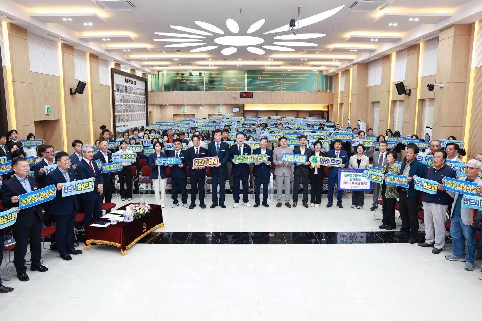 행사 말미에는 참석자 전원이 ‘농어촌 기본소득 시범사업은 화순으로’를 힘차게 외치며, 화순군민의 단합된 염원과 결의를 다시 한번 확인했다.