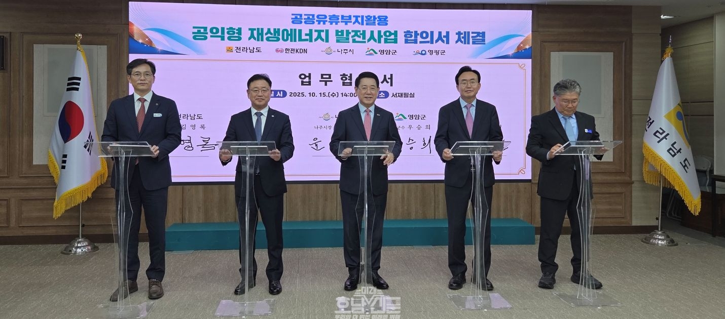 나주시가 전라남도, 영암군, 영광군, 한전KDN(주)과 함께 ‘공익형 재생에너지 발전사업’ 업무협약을 체결했다.