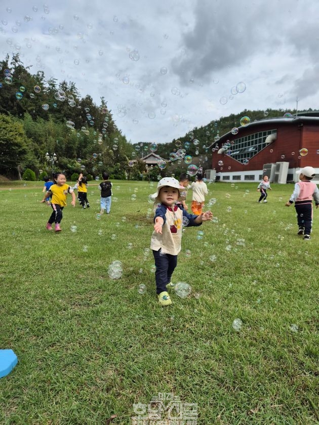 광주시 북구 용봉동 소재 국공립 ‘쌍용 지혜숲 어린시집'(원장 유운희) 15명의 어린이들이 샘실농장믜 샤인머스켓 재배하우스에서 탐스럽게 열린 포도송이를 수확하고 시식후 한박스씩 담아가는 푸짐한 체험학습을 하고나서 점심식사후 인근의 화순군고인돌 가을꽃 축제장에서 곱게핀 코스모스며 예쁜 꽃들로 장식된 다체로운 조형물과 함께 자연을 만끽했으며