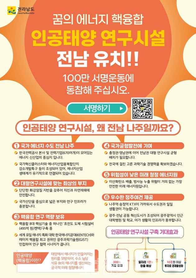 전라남도 나주시가 인공태양(핵융합) 연구시설 유치를 위한 시민 참여 열기를 높이고자 ‘12만 시민 서명운동’을 본격 추진한다.