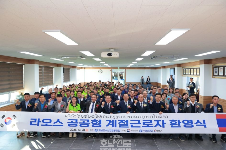 해남군은 27일 라오스 계절근로자 38명의 입국 행정절차를 마치고 지역에 취업을 축하하는 기념식을 가졌다.