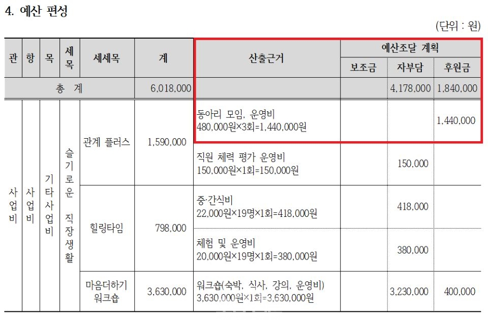 ▼ "직원 소진 예방" 명목...실상은 취미 동아리 운영비