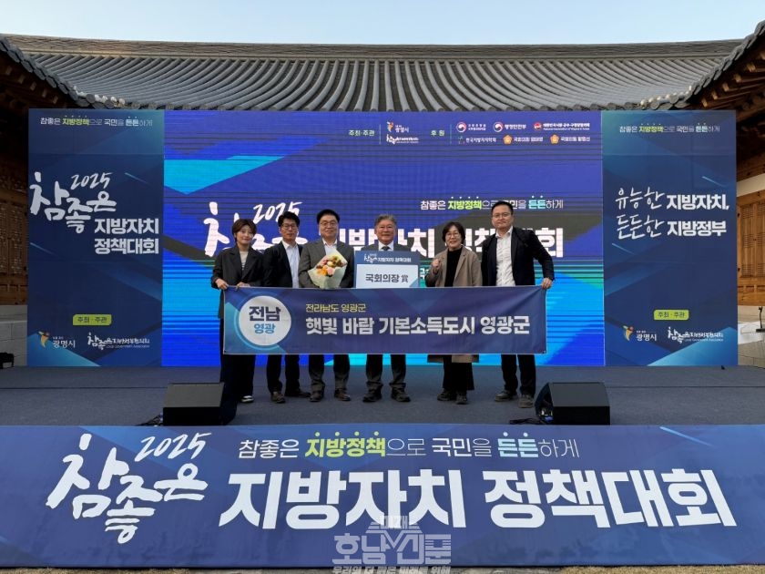 영광군(군수 장세일)은 7일 국회의사당 사랑재에서 열린 ‘2025 참좋은 지방자치 정책대회’에서 ‘햇빛바람 기본소득’ 정책을 발표하며 국회의장상을 수상했다. 이번 대회는 민선 30주년을 맞아 ‘유능한 지방자치, 든든한 지방정부’를 주제로 전국 지방정부의 우수 정책을 공유하고 발굴하기 위한 자리로, 전국 48개 지방정부가 참여했으며, 국회의장상, 국무총리상, 행안부 장관상 등 총 26개 부문에서 시상이 이루어졌다.