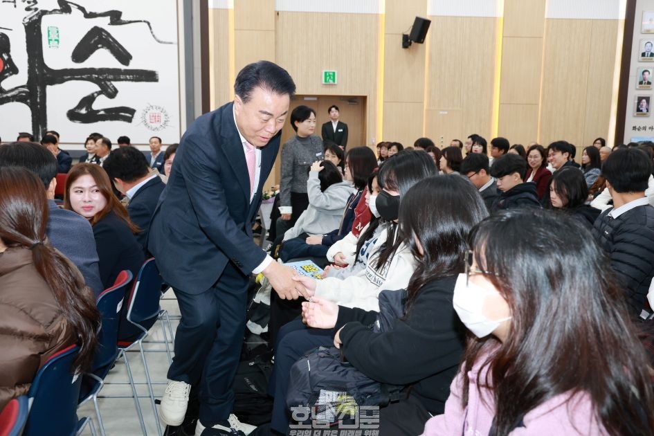이번 정례조회에는 화순읍 주민자치회, 화순장학회, 청소년 글로벌문화체험단 등 참관 단체와 군 공직자 등 300여 명이 참석했다.