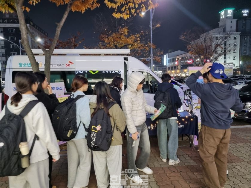 전라남도청소년상담복지센터(원장직무대행 강종철)는 11월 13일(목) 25학년도 대학수학능력시험일에‘마음건강지킴이버스’를 활용한 찾아가는 거리상담을 운영하여 수험 청소년을 응원하고, 정서적 어려움을 겪는 청소년을 지원하기 위해 찾아가는 거리상담을 운영하였다.