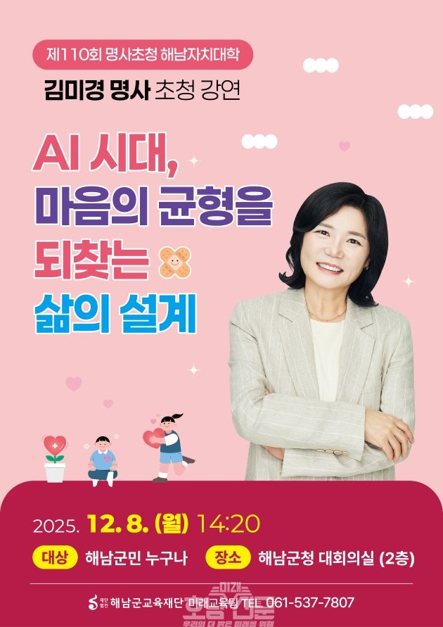 해남군 교육재단(이사장 명현관)은 오는 8일 해남군청 2층 대회의실에서 해남자치대학을 개최한다.