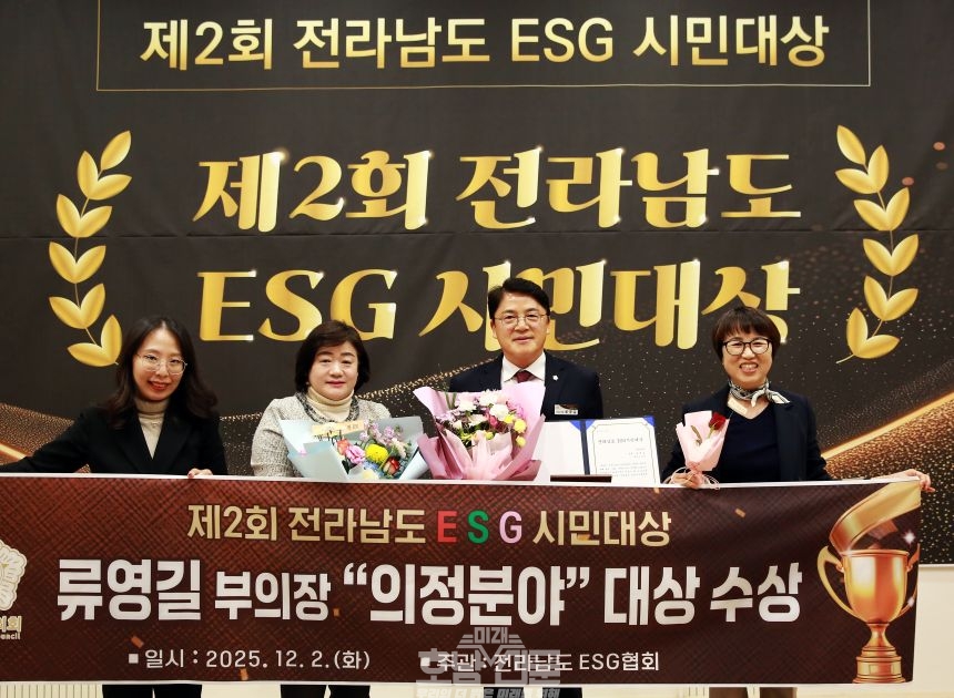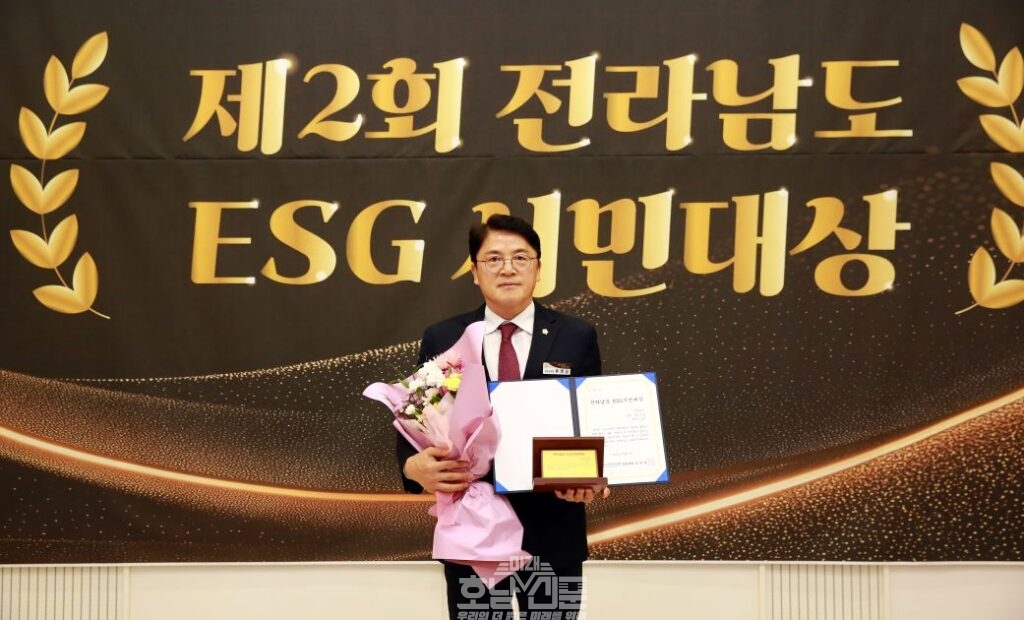 이번 시상식은 전라남도 ESG협회가 주관해 전라남도 내 ESG(환경·사회·지배구조) 가치 확산에 앞장서고 실천적 성과를 이룬 인물들을 분야별로 선정해 수여하는 상이다.