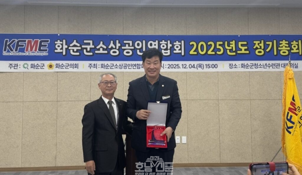 또한 연합회는 이날 화순군 소상공인의 성장과 지역경제활성화를 위한 깊은 관심과 적극적인 의정활동에 대한 감사한 마음을 담아 하성동 군의원에게 공로패를 수여했다.