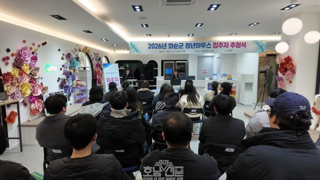 화순군(군수 구복규)은 지난 19일 화순군 청년하우스 1층에서 청년들의 주거 부담 완화와 취·창업 지원을 위한 주거형 취업 공간인 ‘화순군 청년하우스’의 2026년 입주자 공개 추첨식을 개최했다고 밝혔다.