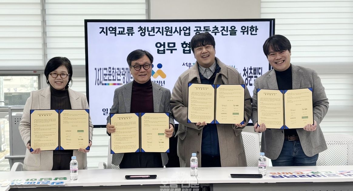 강진군문화관광재단이 지난 13일 서울시 관악구청년센터, 금천구청년센터, 강진군청년센터와 ‘지역교류 청년지원사업의 공동 개발 및 운영’을 위한 업무협약(MOU)을 체결했다.