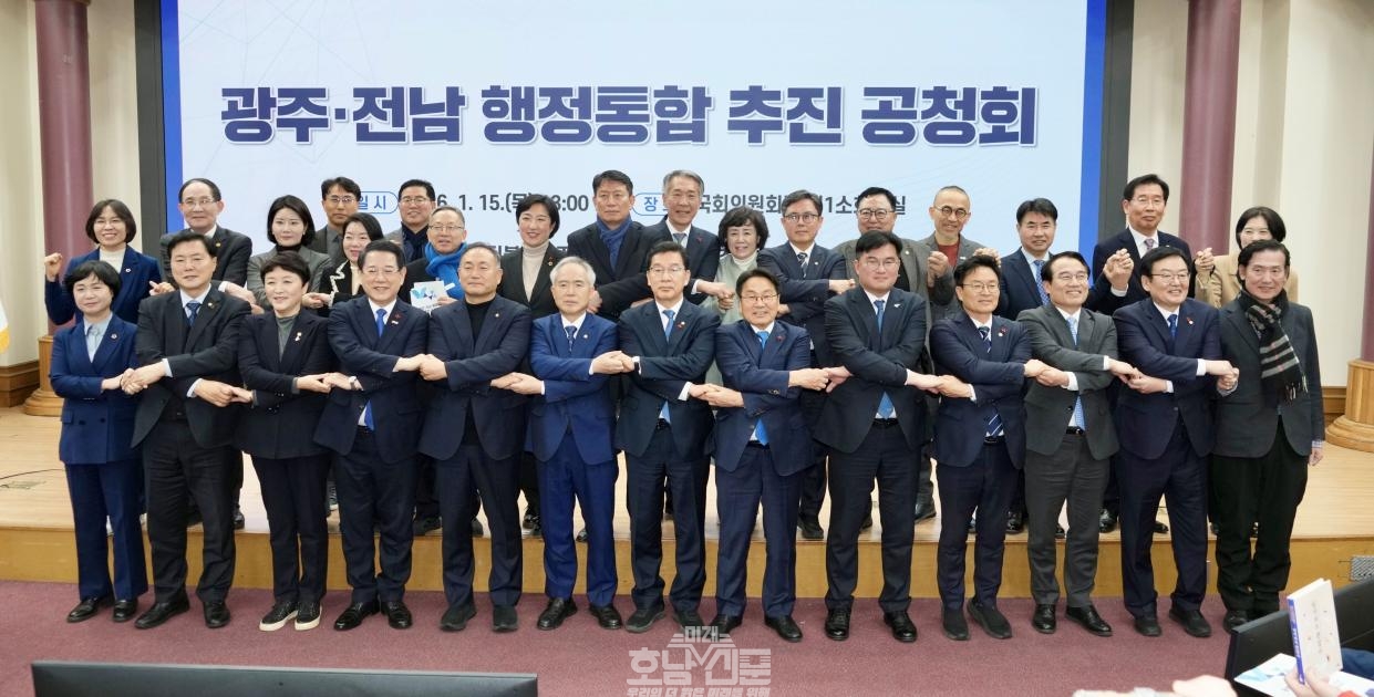 민주당 광주전남행정통합추진특별위원회 공동위원장인 양부남·김원이 국회의원은 공청회 개최를 환영하며 “국가균형발전과 자치분권 실현이라는 행정통합의 대의를 위해 서로 양보와 이해, 배려 속에서 뜻을 모으자”고 강조했다.