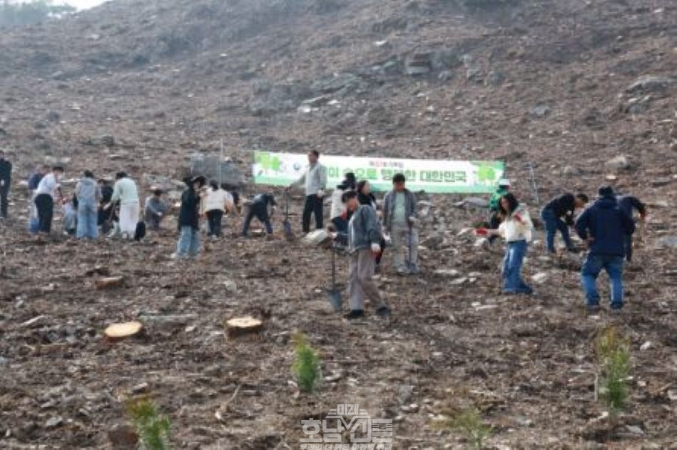식목일 나무심기 행사 참여자들이 나무심는 모습