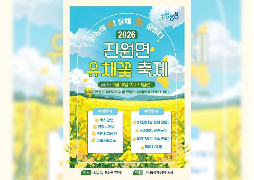 장성군 진원면 유채꽃 축제가 오는 18일 산동리에서 열린다.