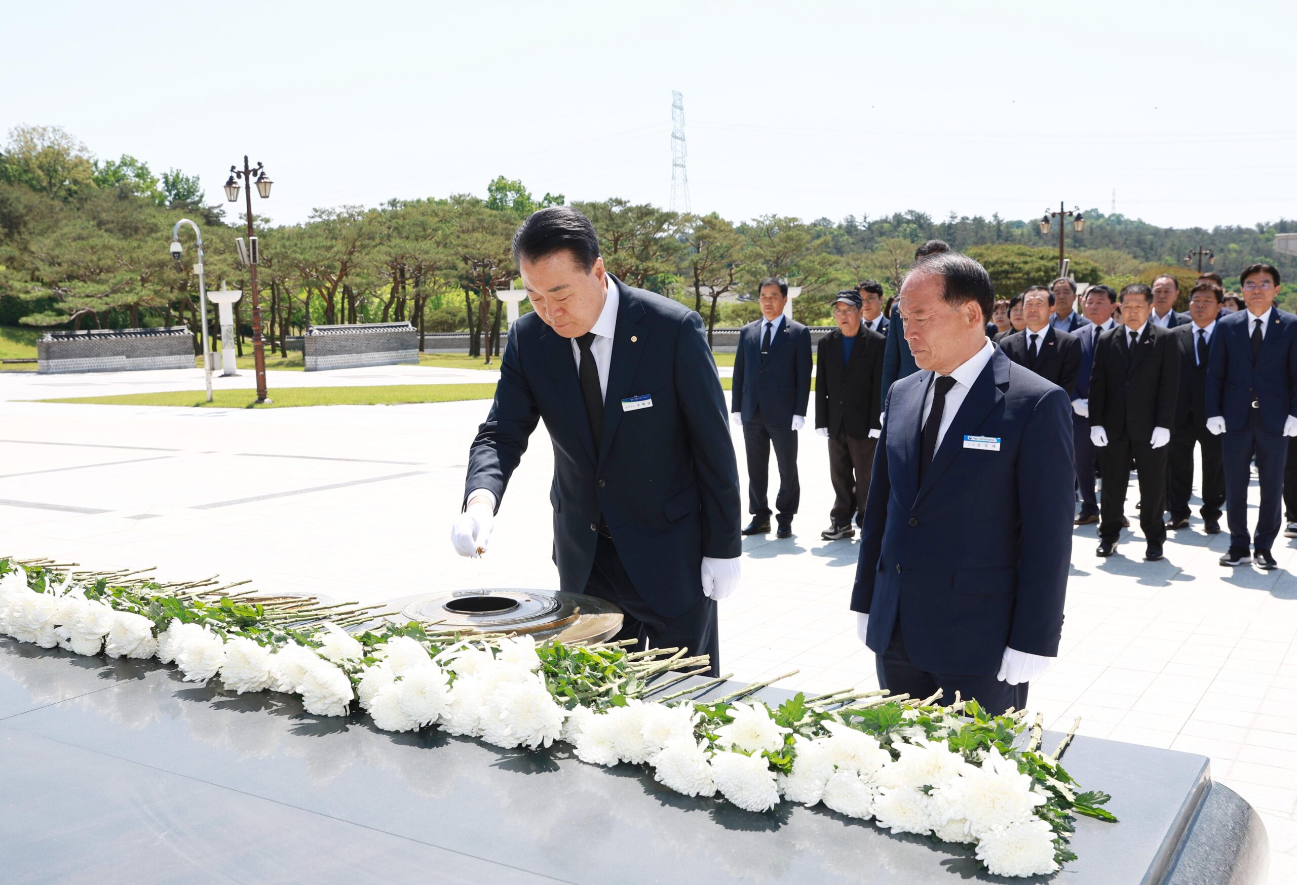 헌화와 분향을 시작으로 오월 영령의 넋을 기리는 묵념을 마친 뒤에는 묘역에 안장된 화순 출신 홍남순 변호사와 박현숙 열사, 행방불명자 최영찬 선생의 묘지를 찾아 숭고한 희생과 정신을 추모하는 시간을 가졌다.