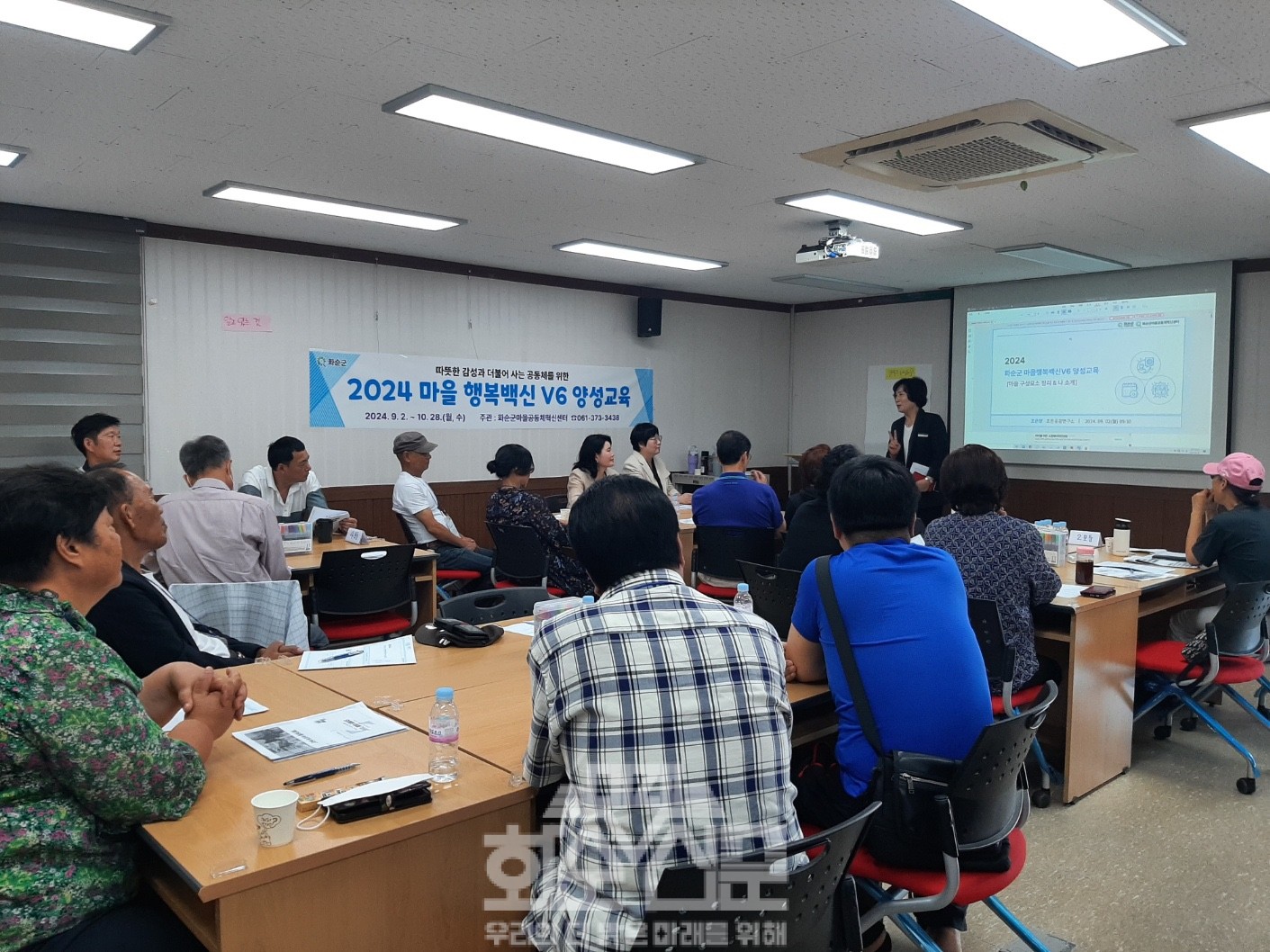 화순군(군수 구복규)은 지난 2일 마을공동체혁신센터에서 ‘화순군 마을행복백신V6 양성 교육’을 개강하였다.