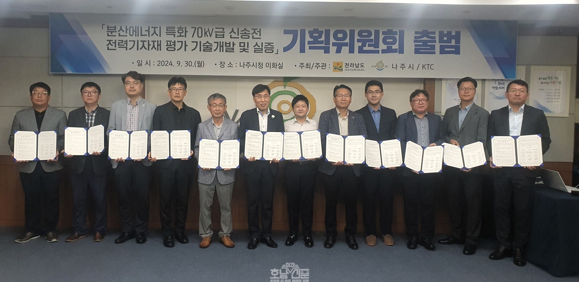전라남도는 30일 나주시청에서 ‘분산에너지 특화 70kV급 신송전 전력기자재 평가 기술개발 및 실증’ 기획위원회 출범식을 열고, 70kV급 신송전 시스템 개발 프로젝트를 추진한다고 밝혔다.