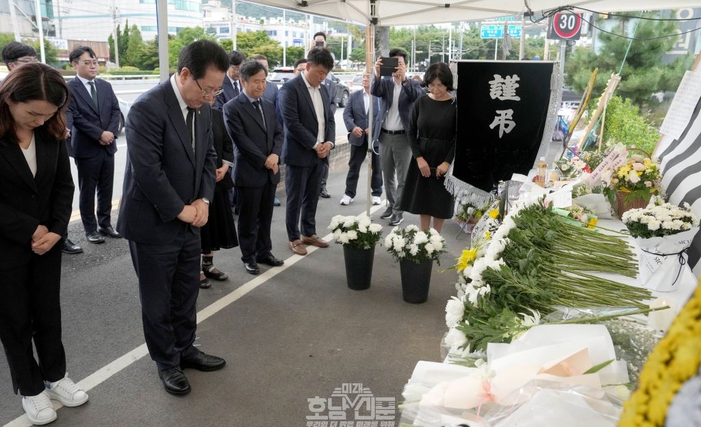 김영록 전라남도지사는 1일 순천 도심에서 묻지마 범죄로 안타깝게 희생된 10대 학생의 추모공간이 마련된 조례동 분향소를 찾아 고인의 넋을 기렸다.