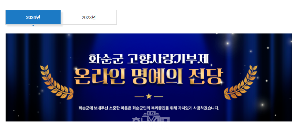 또한 온라인 명예의 전당과 함께 군청사 로비에 ‘화순군 고향사랑기부제 명예의 전당’도 조성할 예정이며, 이를 통해 기부자들의 소중한 뜻을 기리고 더 많은 사람의 관심과 참여를 이끌 수 있을 것으로 보인다.