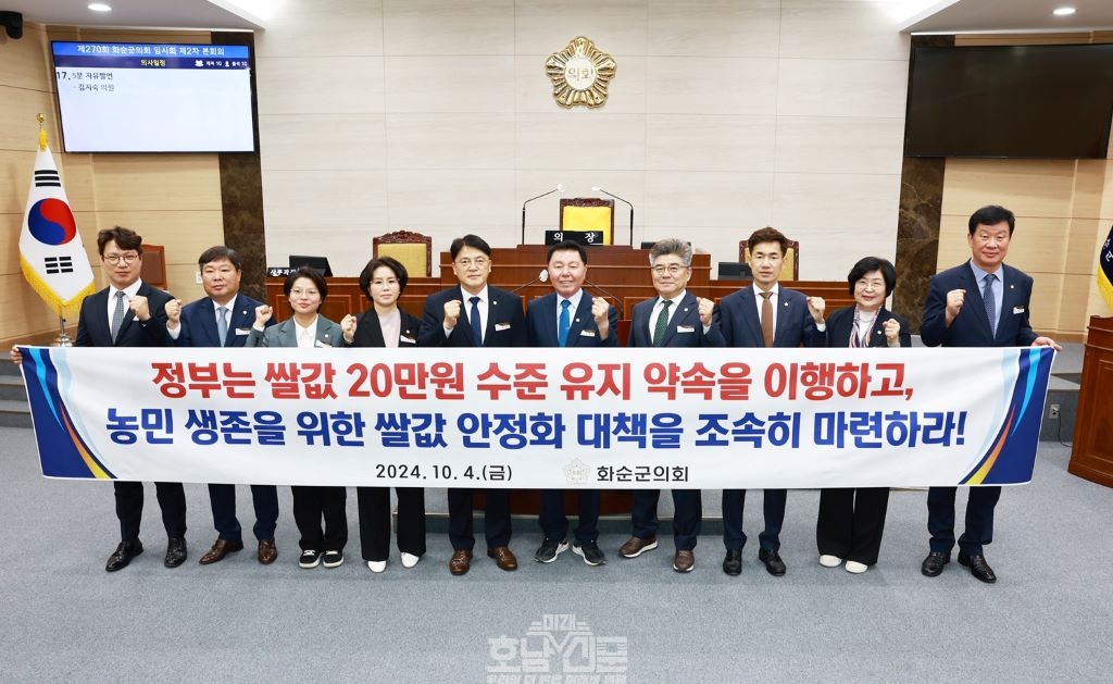이에 따라 화순군의회는 쌀값 안정화를 위한 실효성 있는 대책 마련을 촉구하는 입장을 발표했다.