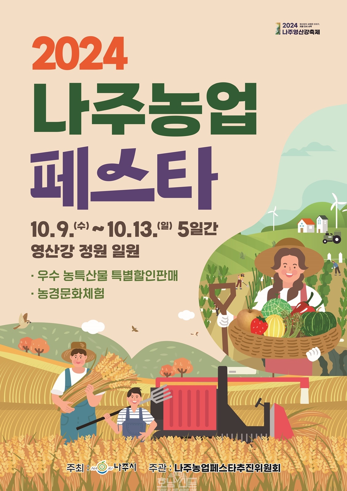 전라남도 나주시(시장 윤병태)는 오는 10월 9일부터 13일까지 영산강 정원 일원에서 ‘2024 나주농업페스타’를 개최한다고 7일 밝혔다.