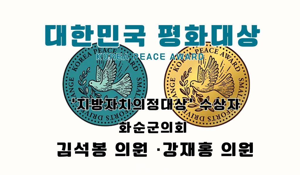 10월 9일, 광주광역시 김대중컨벤션센터에서 열리는 ‘제11회 대한민국 평화대상’ 시상식에서 화순군의회 김석봉 의원과 강재홍 의원이 ‘지방자치의정대상’ 수상자로 선정되었다. 시상식은 오후 3시부터 2층 행사장에서 진행될 예정이다.