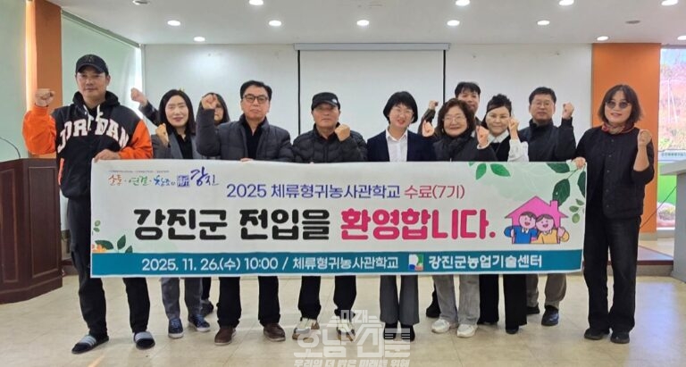 ...강진군은 지난달 26일 체류형귀농사관학교 7기 교육생 수료식을 열고, 9개월간의 체류·교육 과정을 성공적으로 마친 교육생들이 강진에서의 새로운 정착 단계에 들어섰다고 4일 밝혔다. 7기 교육은 올해 3월