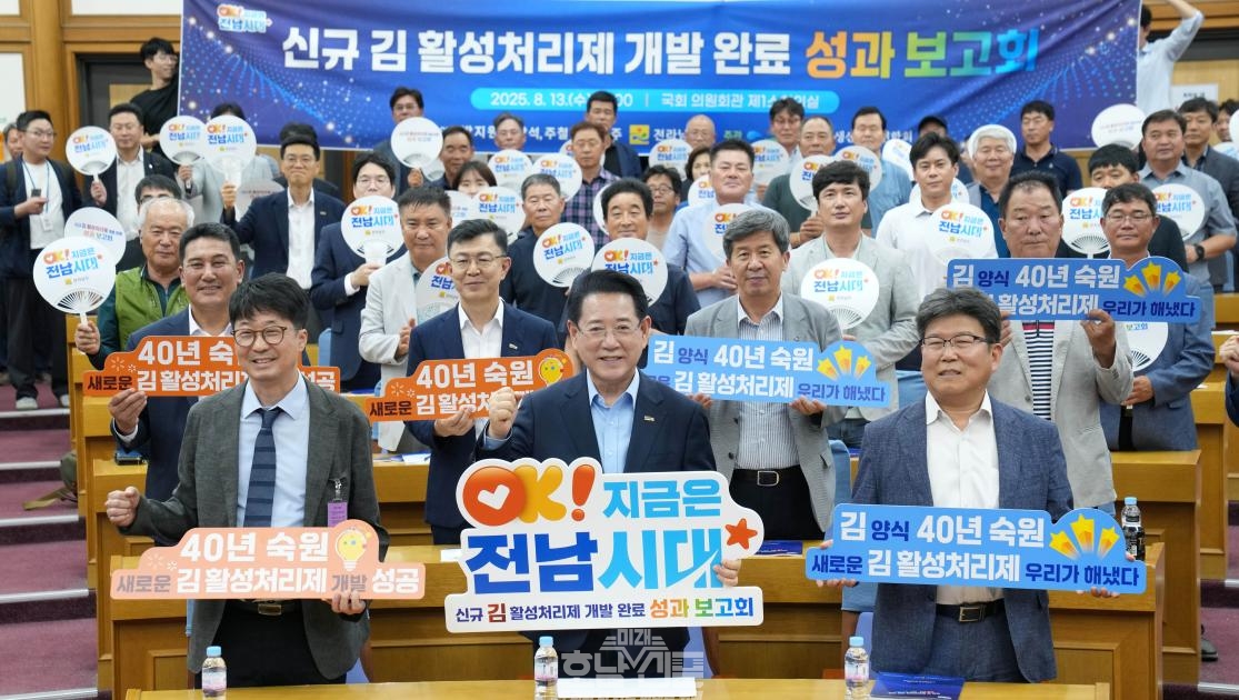 전라남도는 13일 국회에서 지난 3년간 연구·개발해 완성한 신규 활성처리제를 어업 현장에 신속히 보급하기 위해 국회의원, 관계기관, 어업인 등에게 설명하는 신규 김 활성처리제 개발 완료 성과보고회를 개최했다. 신규 김 활성처리제는 김 양식 어업인의 40년 숙원 해소를 위한 것으로, 기존 김 활성처리제보다 ▲파래·요각류 제거 ▲균 억제 등 병해충 방제 ▲유해물질 부착 방지 ▲작업시간 단축 등이 개선됐다. 특히… 전남도, 신규 김 활성처리제 어업 현장 신속 보급 박차 계속 읽기